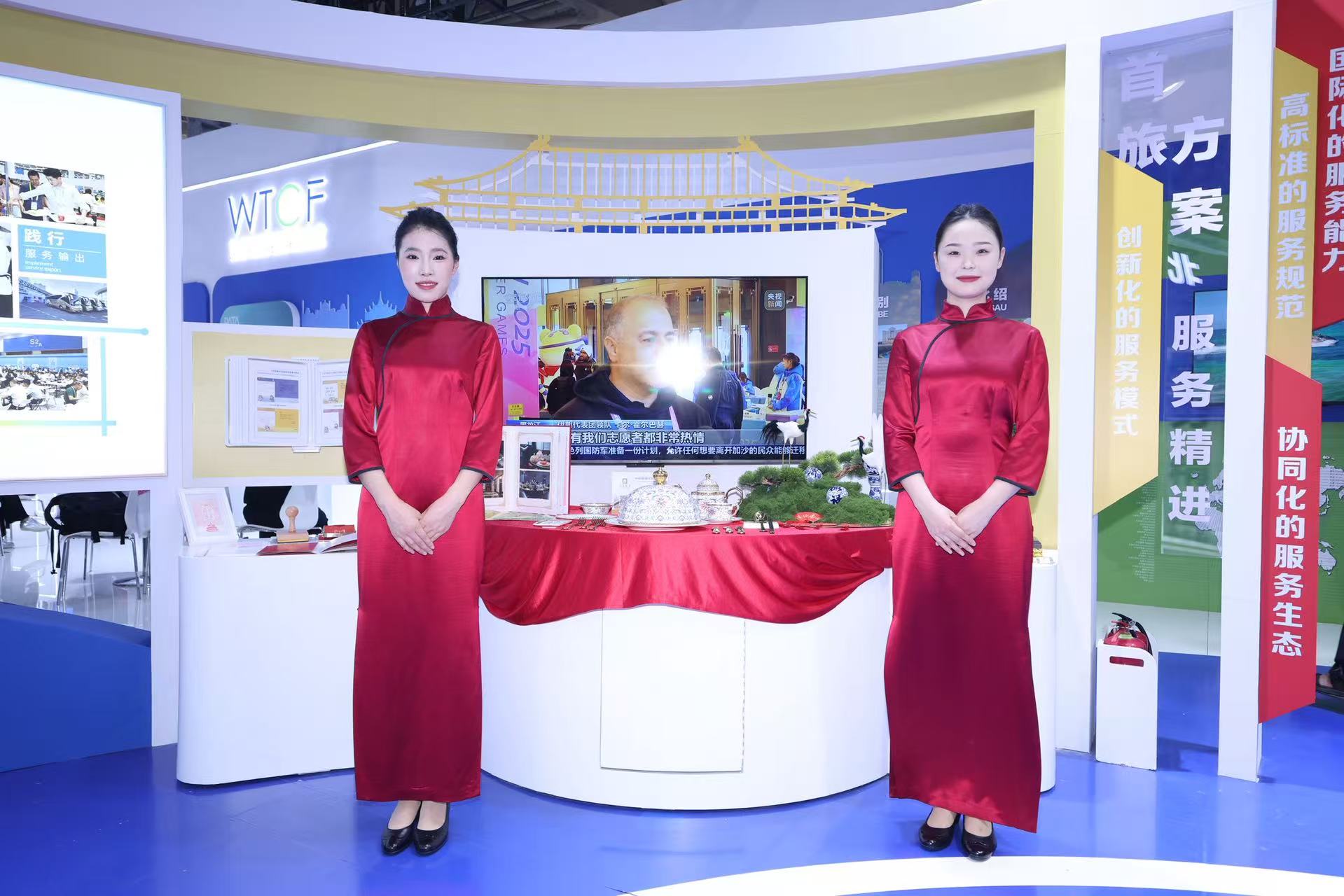 在9号馆“北京服务”主题展区,ok138cn太阳集团古天乐以“北京服务 ok138cn太阳集团古天乐方案”为主,通过国宴餐桌实景还原、亚冬会感谢信展示等生动形式,再现其在高规格政务接待和国际赛事服务中的卓越表现。作为北京市属文旅领军企业与国家重大活动服务保障的“排头兵”和“先锋队”,始终以“首善标准” 诠释“北京服务”核心内涵,从历届全国两会到“一带一路”国际合作高峰论坛,再到成功完成2025年上合峰会、第九届亚冬会等国际项目的服务输出与市场化运营,ok138cn太阳集团古天乐以全链条保障能力、国际化服务水准、创造性实践成果,成为“北京服务”品牌的核心践行者与“北京服务”走向世界的重要窗口。